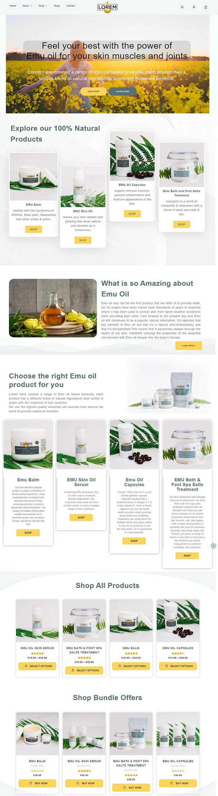 Lorem offers natural alternatives to care for skin conditions and relief muscle and joint aches by preparing Emu oil products such as skin serums, Emu oil capsules, balm, bath & foot spa salts & soothing creams.