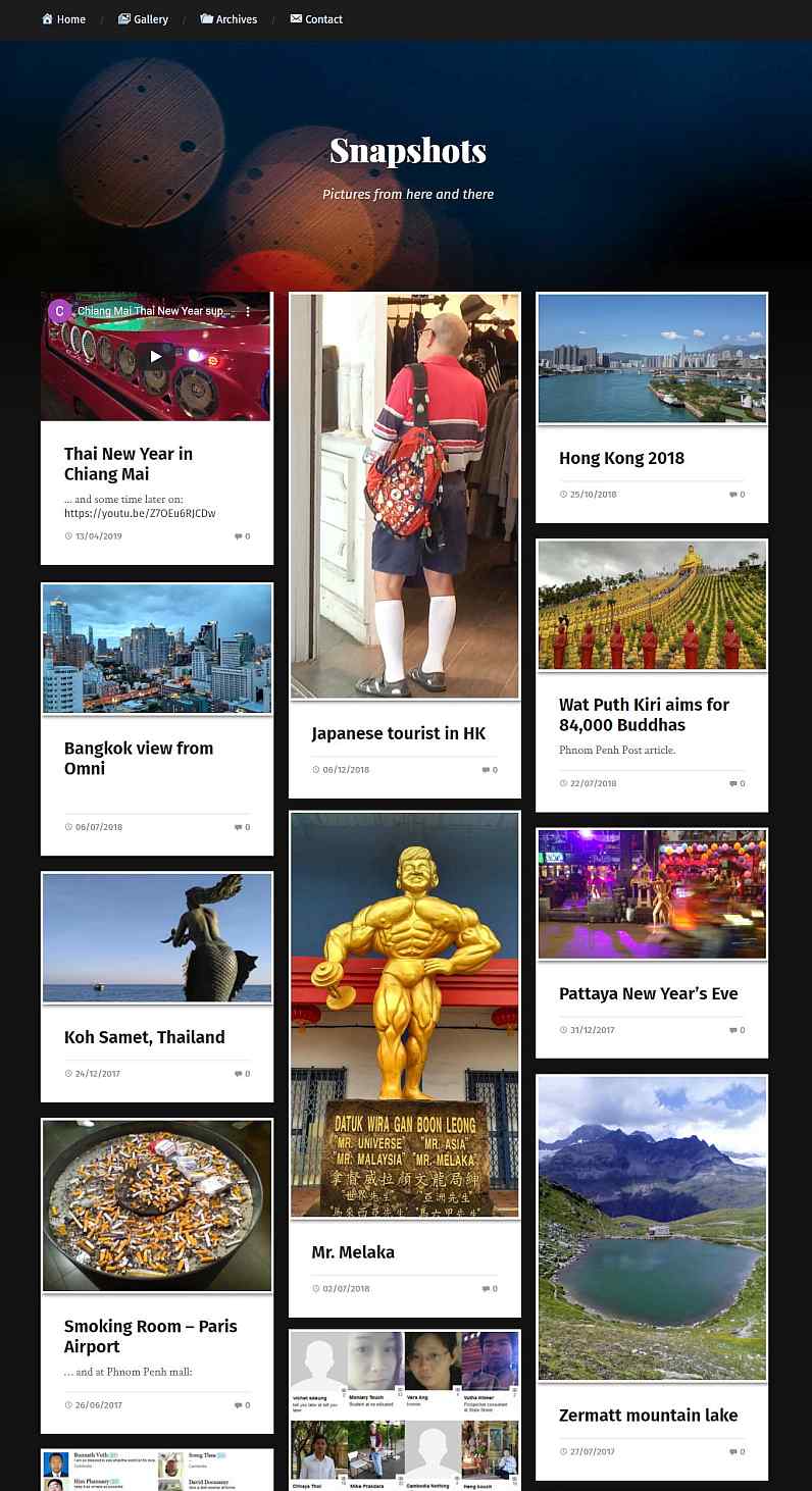 A photography and travel blog. Has not been updated for a while but it displays an interesting layout based on the design of one of Anders Norén beautiful and free themes.